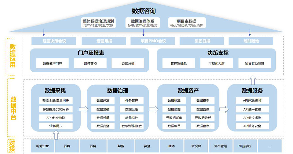 各板塊綜合數(shù)據(jù)從各套系統(tǒng)中取數(shù)后合并報表提報、整合耗時,未形成一套完整、統(tǒng)一的數(shù)據(jù)平臺賦能業(yè)務(wù);